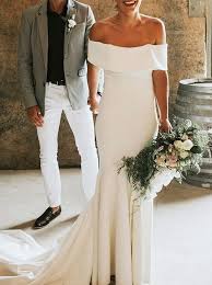 Off the shoulder satin mermaid wedding dress. The mermaid style is the sexiest silhouette. Picture color or other colors there are many colors a. It will show off your curves in a fitted body hugging dress that subtly flares out below the knee.
