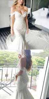 Off shoulder wedding dresses appliques mermaid bridal gowns strapless cap sleeve. They reveal the top of the torso and neck but also provide more support than say a strapless dress ensuring the bride s bodice stays in place. It will show off your curves in a fitted body hugging dress that subtly flares out below the knee.